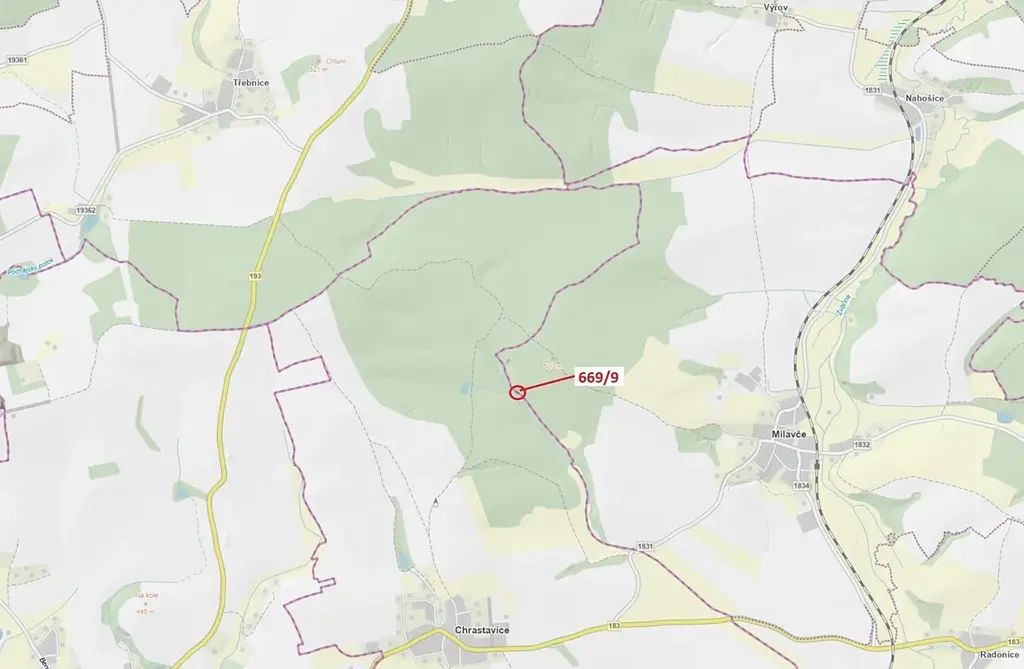 Lesní pozemek o výměře 32 m2, parcelní číslo 669/9, podíl 1/1, katastrální území Chrastavice, obec Chrastavice, obec s rozšířenou působností Domažlice, okres Domažlice, Plzeňský kraj.
