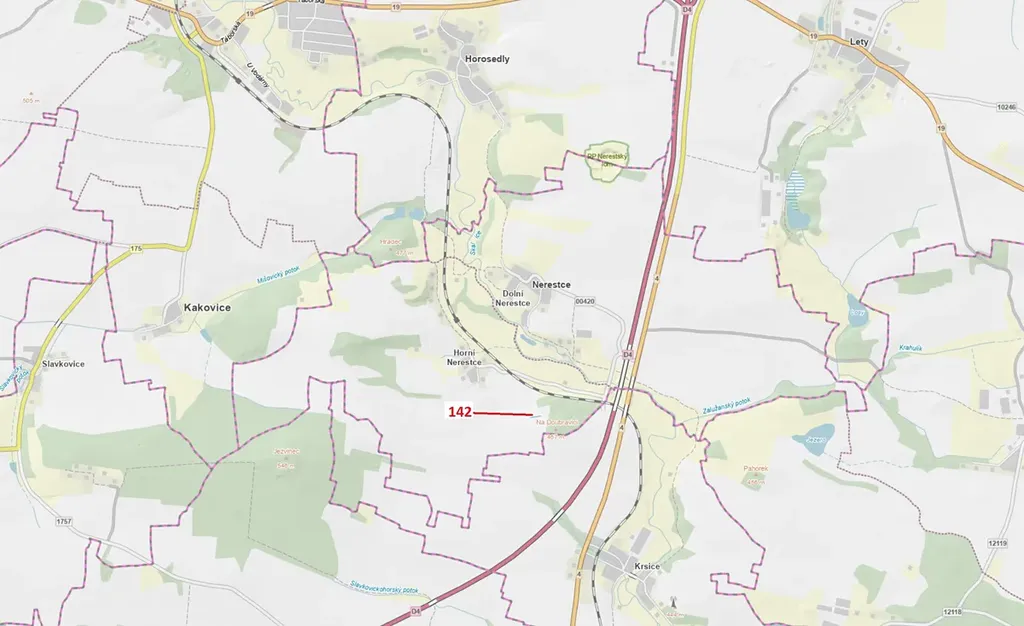 Ostatní plocha o výměře 145 m2, parcelní číslo 142, podíl 1/1, katastrální území Horní Nerestce, obec Nerestce, obec s rozšířenou působností Písek, okres Písek, Jihočeský kraj.