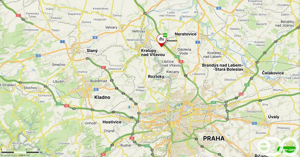 Kozomín leží přímo u sjezdu z dálnice D8 (exit č. 9 – Kralupy nad Vltavou, Veltrusy), díky čemuž je hlavní město Praha doslova na dosah a v příjemné dojezdové vzdálenosti autem.