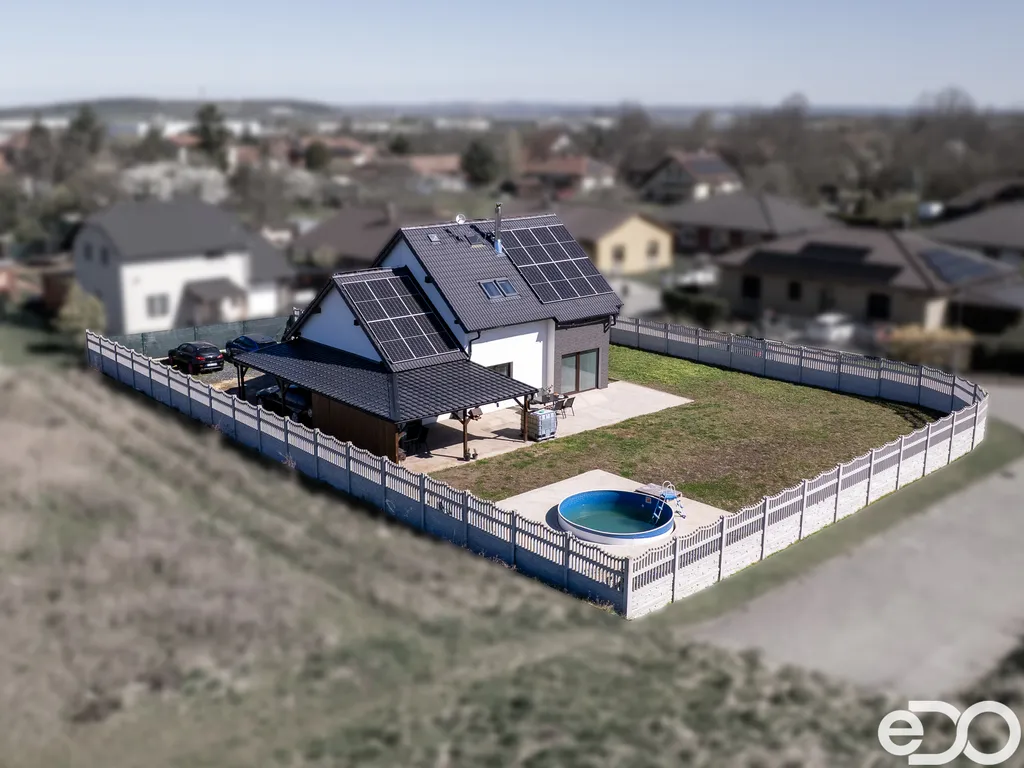 Dovolte mi nabídnout vám k prodeji prostorný rodinný dům v obci Kozomín, kolaudovaný v roce 2018. Jedná se o novější stavbu s moderními prvky, jako je například fotovoltaika a nabíjecí stanici pro elektroauta. Dvě nadzemní podlaží nabízí celkovou podlahovou plochu cca 162 m² včetně zastřešené terasy a garáže. Dům je připraven k okamžitému bydlení bez nutnosti dalších investic.
