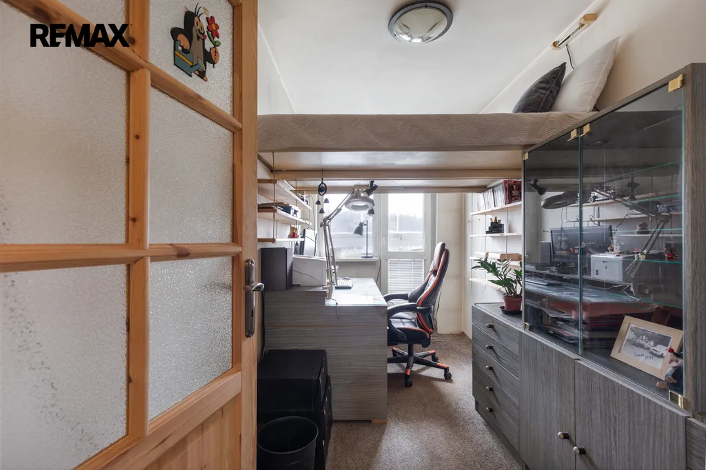 ✅ Pokojík /vstup na lodžii s orientací jižním směrem/ - užší pokoj s vestavným spaním v prostoru / praktické uspořádání místa pro umístění nábytku v pokoji/