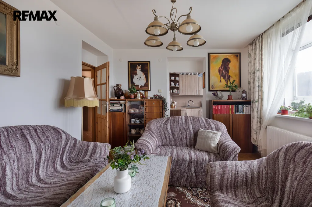 ✅ Slunný obývací pokoj - / ponechání nábytku dle dohody / vstup na velkou podélnou zasklenou lodžii, orientace na jih