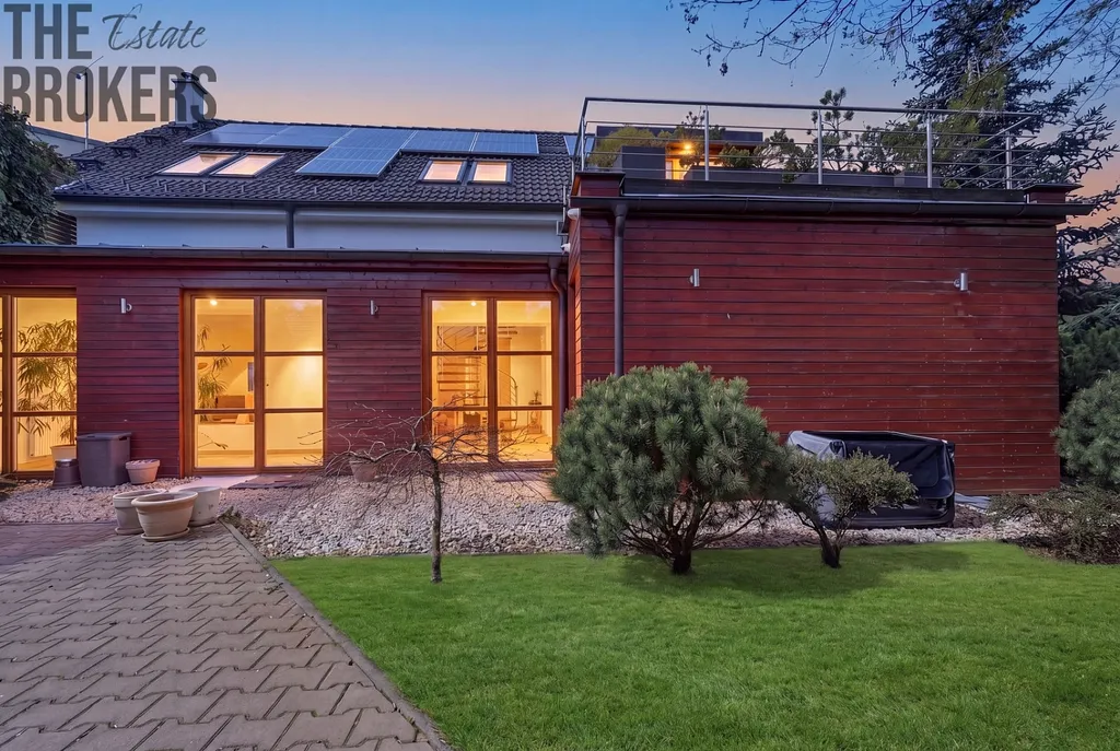 Každý detail tu má své místo – od měděných prvků, přes podlahové vytápění až po technologie, které dávají smysl i ekonomicky. Díky fotovoltaice a nastavení domu se provozní náklady pohybují výrazně níže, než byste čekali u nemovitosti této velikosti – kolem 6–7 tisíc měsíčně. To je přesně ten moment, kdy si uvědomíte, že luxus nemusí být drahý na provoz.