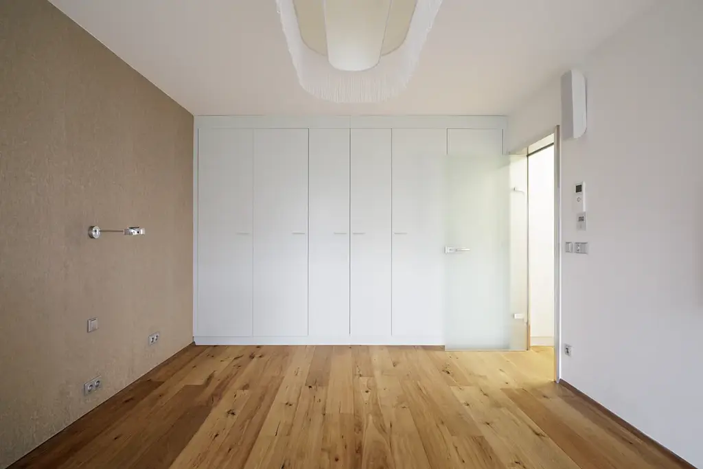 Velká okna od podlahy až ke stropu poskytují nepřerušované výhledy do okolní krajiny a prosvětlují interiér. Na většině oken jsou venkovní žaluzie, které zajišťují ochranu před sluncem a zároveň poskytují soukromí. Podlahy jsou z kvalitního dubového dřeva, obývací pokoj je vybaven krbem a kuchyňské linky jsou vybaveny spotřebiči Miele. Vytápění je zajištěno podlahovým topením, které je rozvedeno prakticky po celém domě, u větších oken je doplněno o podlahové radiátory. Krbová vložka je teplovodní, napojená na tepelnou soustavu, což umožňuje vytápění i pomocí krbu. Dvojgaráž a další parkovací místo na pozemku zajišťují dostatek parkovacích kapacit. Dům je chráněn zabezpečovacím systémem a napojen na PCO (pult centralizované ochrany).