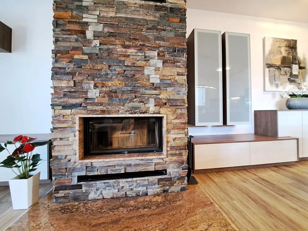 Dispoziční řešení domu: Zádveří, vstupní chodba, technická místnost, komora, kuchyň Sýkora s vestavěnými spotřebiči AEG , obývací pokoj s krbem a přímým vstupem do zahrady , pokoj-šatna se vstupem na prostornou terasu s příjemným posezením, ložnice, pokoj, koupelna ( umyvadlo, prostorným sprchový kout, finská sauna), samostatné WC s umyvadlem, garáž je opatřena sekčními vraty a přes technickou místnost se projde do domu. Vytápěná plocha domu je 120 m2.