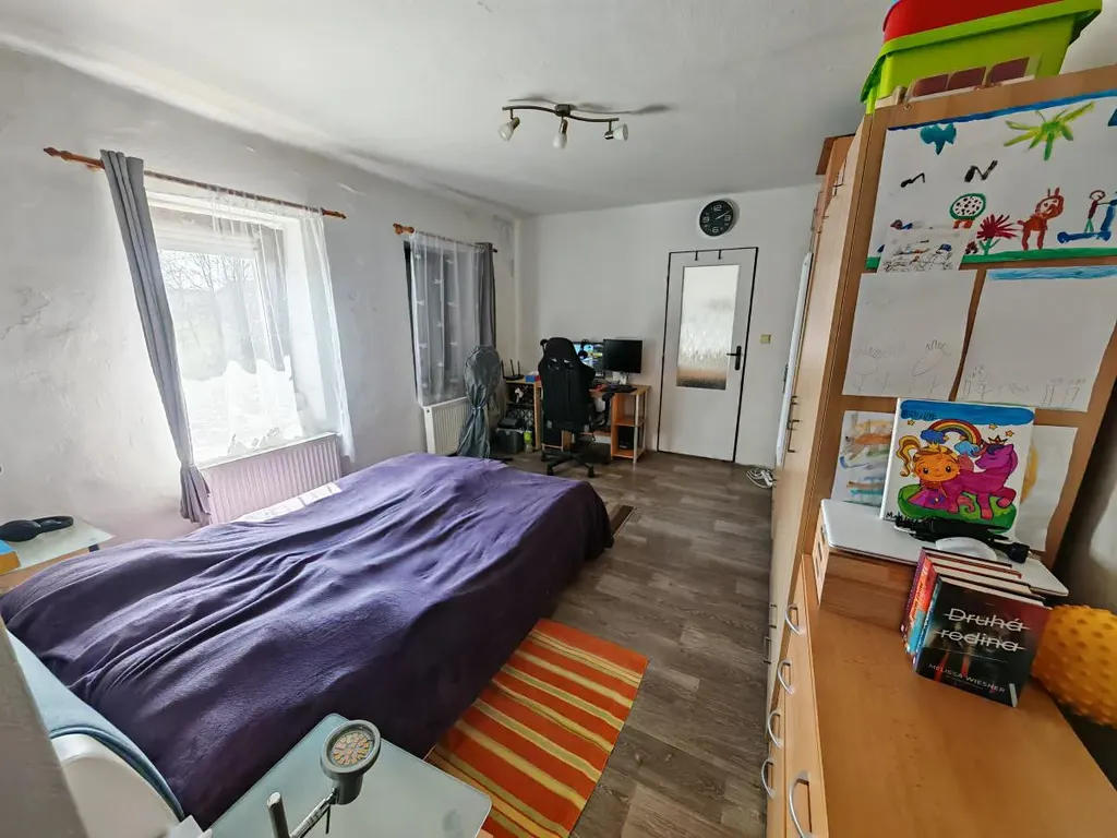 Dům je v dobrém stavu, což znamená, že je připraven k okamžitému užívání, avšak nabízí i prostor pro úpravy dle vašich představ v četně modernizace. Součástí domu je sklep, ideální pro úložný prostor nebo sezónní výpěstky. Vytápění je zajištěno Plynovým kotlem s rozvody do deskových radiátorů, koupelna pak disponuje Podlahovým topením, vanou i sprchovým koutem. Rozvody elektroinstalace jsou v mědi, teplou vodu zajišťuje el. bojler. Příjezd k domu po asfaltové cestě. Ve dvoře jsou další stavby na různé možnosti dalšího využití.