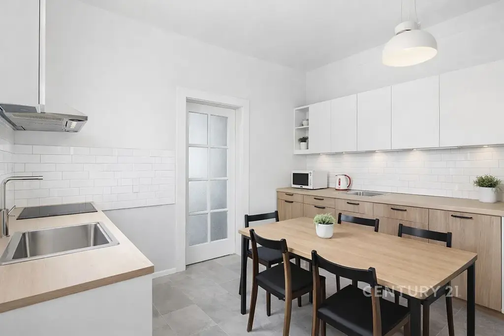 Kuchyň, tři pokoje, koupelna a WC. Příjemným prvkem je dřevěná pavlač orientovaná do uzavřeného dvora a zahrady, která zajišťuje klid a soukromí.