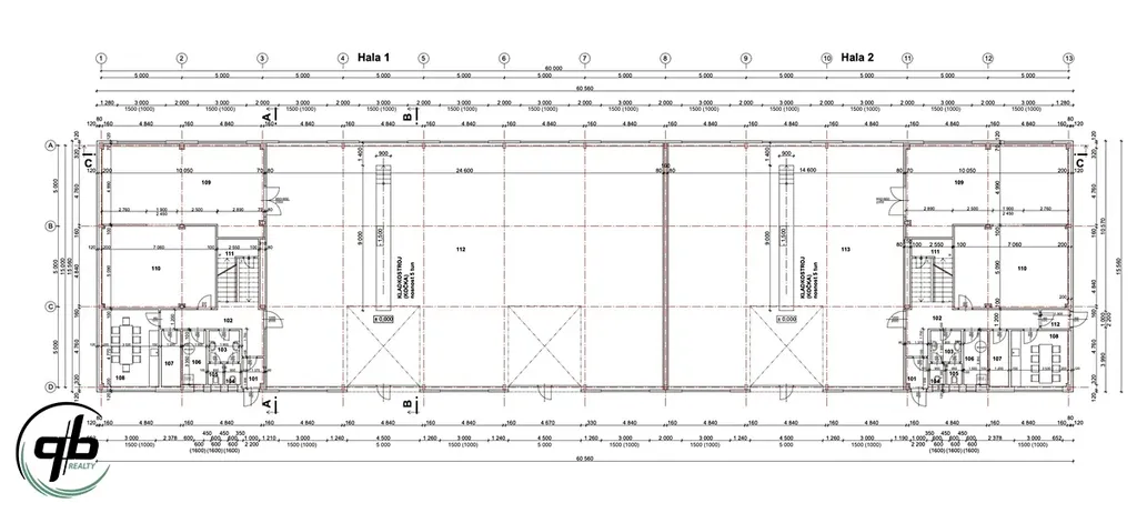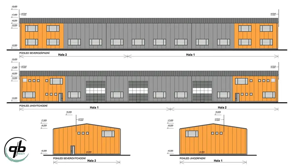 Nabízíme k prodeji pozemek o výměře 3451 m2, v průmyslové zóně ve Vratimově, na ul. Mourova s vydáným pravomocným stavebním povolením k výstavbě haly o zastavěné ploše 942,31 m2. Hala je rozdělená na dva samostatné bloky, každý s dvoupodlažní administrativní a otevřenou jednopodlažní skladovou částí s jeřábovou kočkou. Je navržená jako montovaná stavba, o celkových rozměrech 60,56 m x 15,56 m, výšky 7,4 m. Je tvořená ocelovým skeletem opláštěným stěnovými PUR panely tl. 120 mm. Nosná střešní konstrukce je navržena ocelová příhradová, sedlová se sklonem 15%. Střešní plášť je navržen z PUR panelů tl. 120 mm.