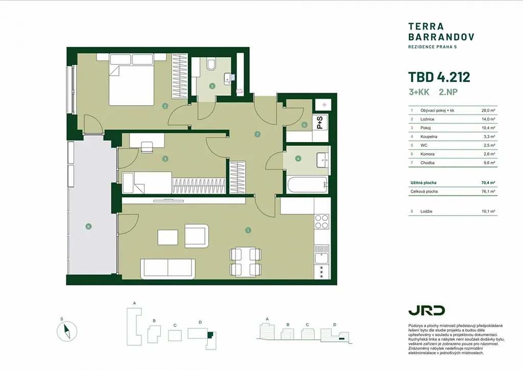 3+kk 70,4 m2 s lodžií | 2. nadzemní podlaží