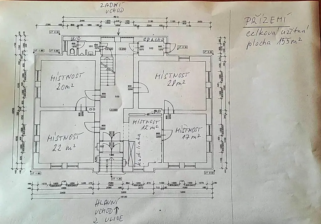 V přízemí se nachází velká uvítací kancelář, místnost s kuchyňským koutem a posezením, další 3 prostorné místnosti, koupelna se sprchou a umyvadlem, samostatné WC s pisoárem a umyvadlem. Z chodby je výstup jak do dvora tak schodištěm do mezipatra a 1.patra.