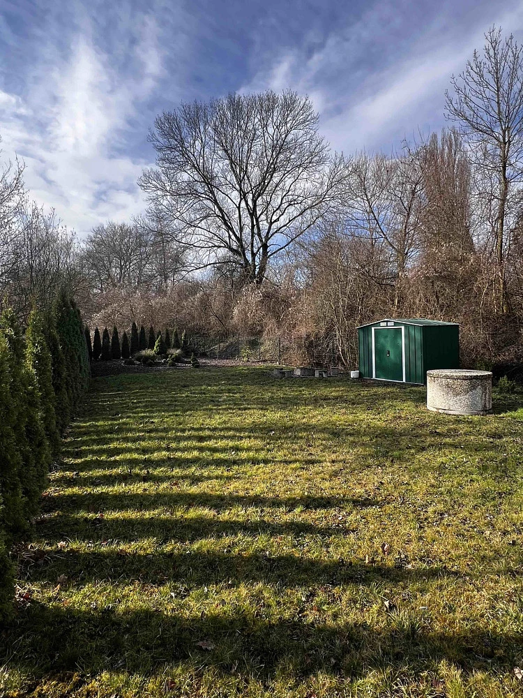Na krajním pozemku stojí mobilheim o velikosti 2+1 ( kuchyň, pokoj, ložnice, koupelna). Je zde také zahradní domek. Vlastní studna na pozemku, elektřina, septik. Tento pozemek je oplocen pletivem a jsou zde vysazeny túje.