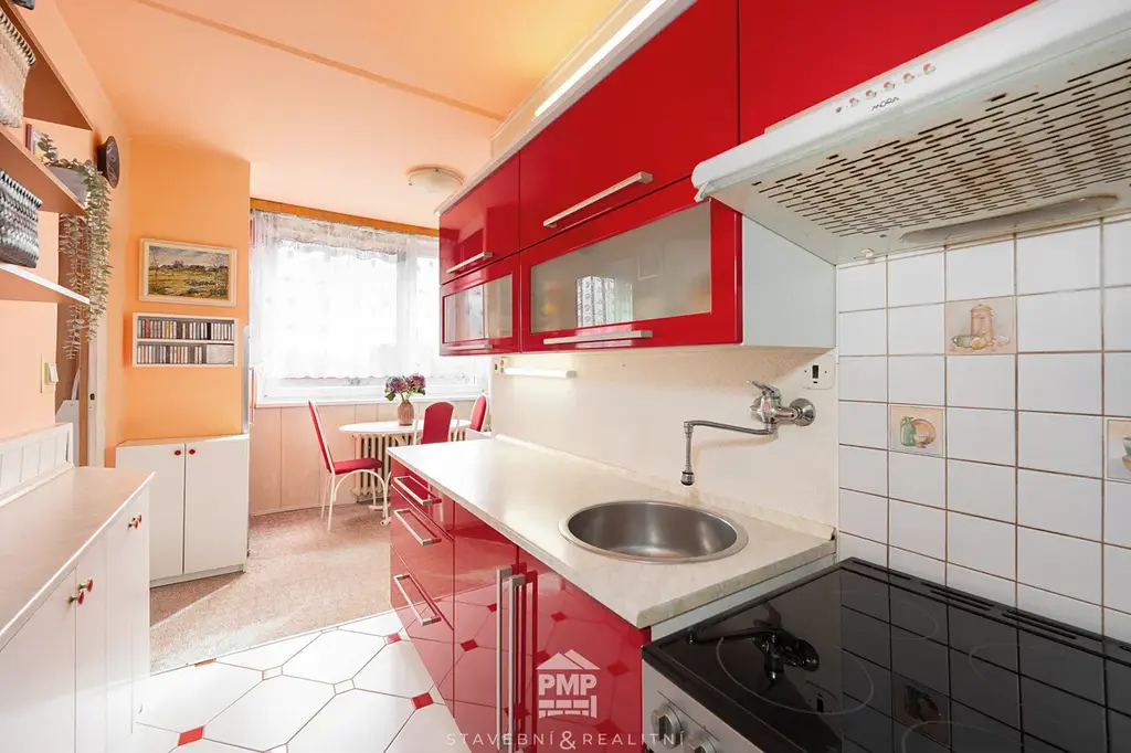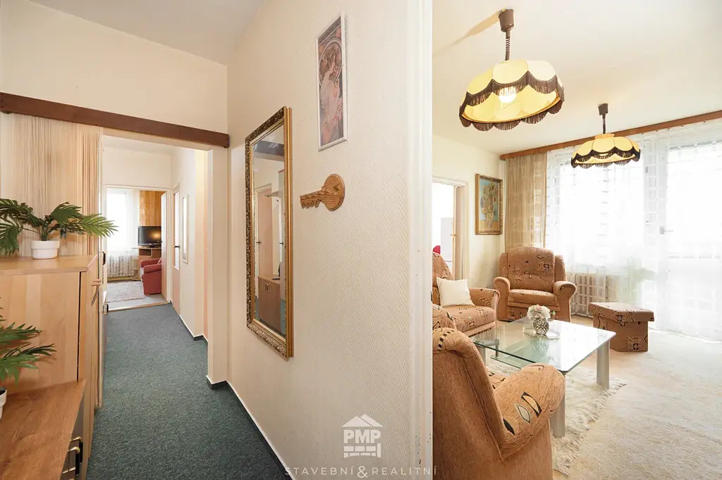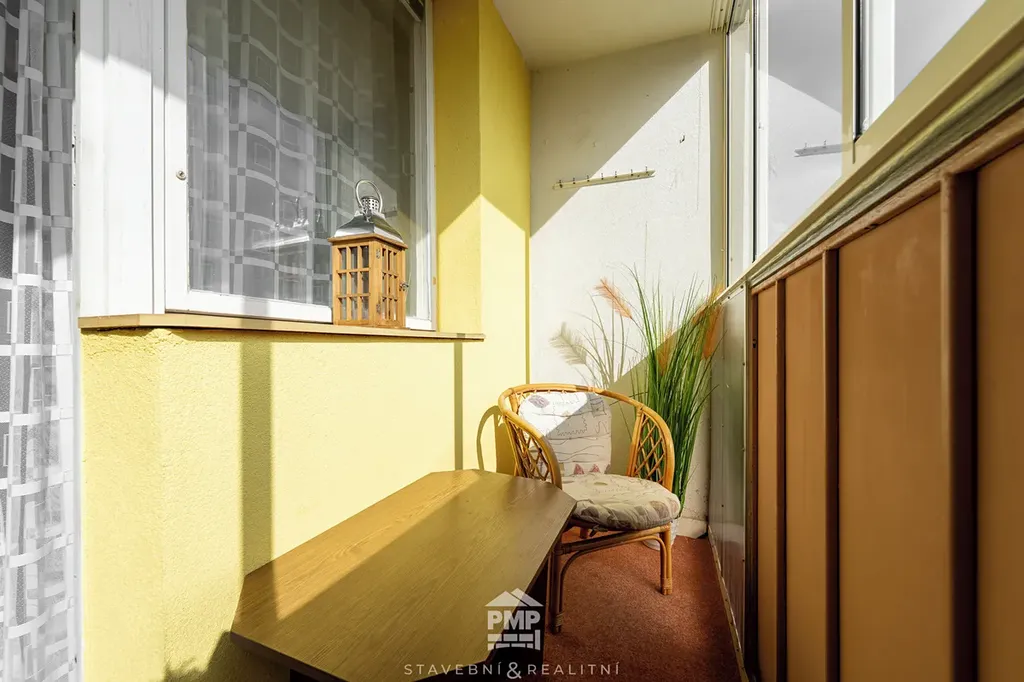 Byt je v pečlivě udržovaném stavu, vhodný k okamžitému užívání. Rozvody instalací jsou původní, jádro umakartové. Dispozice nabízí pohodlné rodinné bydlení – obývací pokoj s výstupem na lodžii, samostatnou kuchyň, dva neprůchozí pokoje a předsíň s prostornou komorou, která nabízí dostatek úložného prostoru. Další úložné možnosti zajišťuje sklepní kóje. Koupelna je vybavena vanou a umyvadlem, WC je samostatné. K bytu náleží také sklepní kóje, ideální pro uložení věcí.