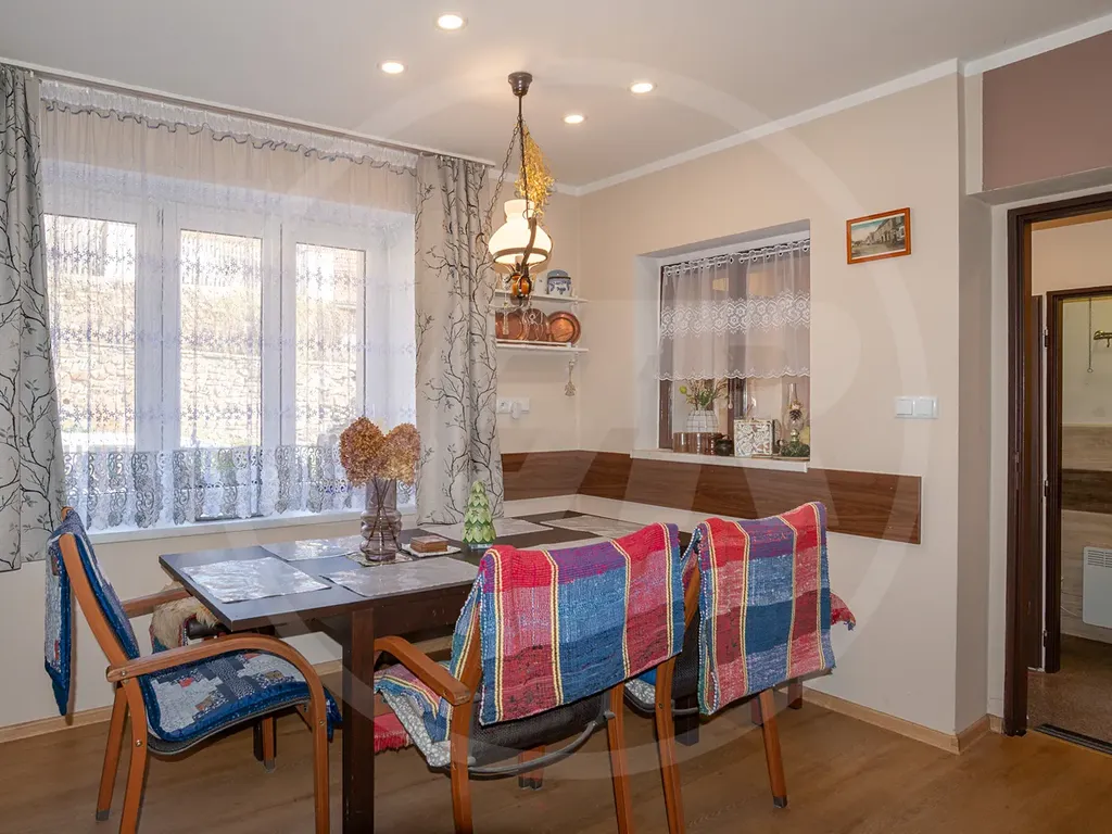 Veškeré rozvody a povrchy, jako např. omítky, obklady a podlahy jsou udělány zcela nově. Dům je zateplený a izolovaný i proti vlhkosti. Vytápění je řešeno automatickými kamny na pelety s dálkovým ovládáním a rozvodem tepla do dalších pokojů.
