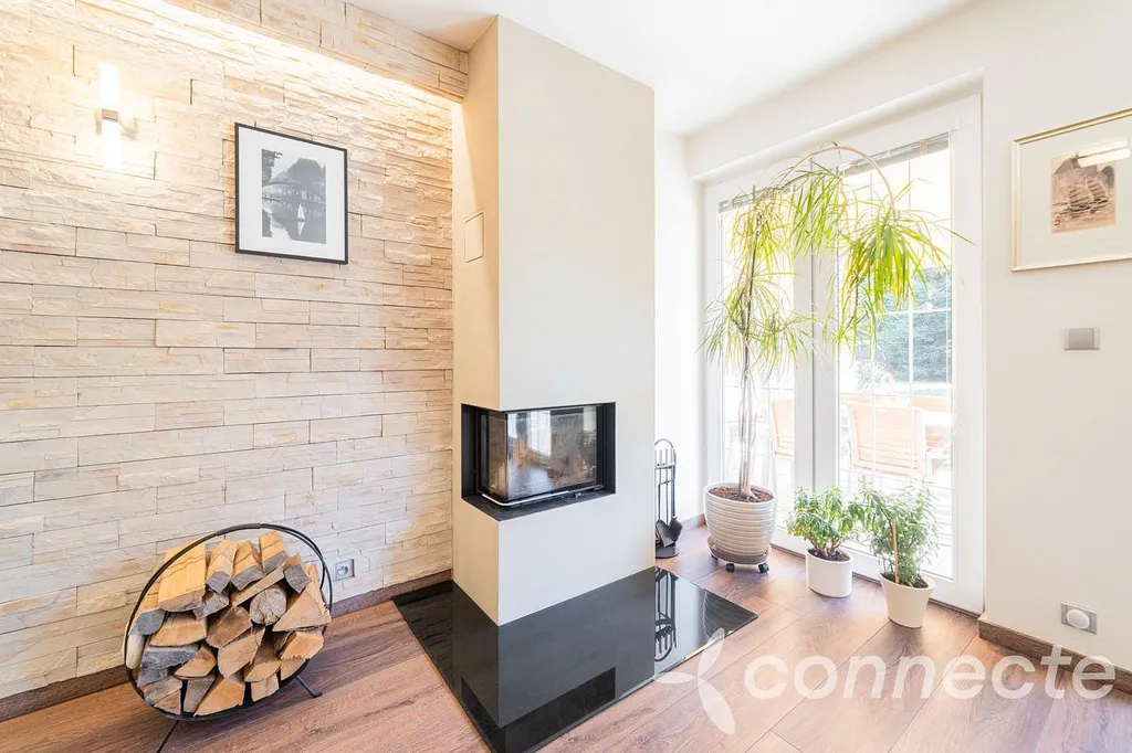 Po zaparkování ve dvougaráži projdete do domu pohodlně suchou nohou, kde je dominantou velkorysý obývací pokoj s krbem. Ten působí útulně a přirozeně se stává centrem rodinného života. Z jedné strany na něj navazuje jídelní kout s velmi prostornou kuchyňskou linkou s vestavěnými spotřebiči. Z druhé strany obývacího pokoje se nachází vstup na terasu za domem, která nabízí ideální zázemí pro letní večery s rodinou či přáteli. Celý dům byl navržen s důrazem na kvalitní materiály a funkční řešení.