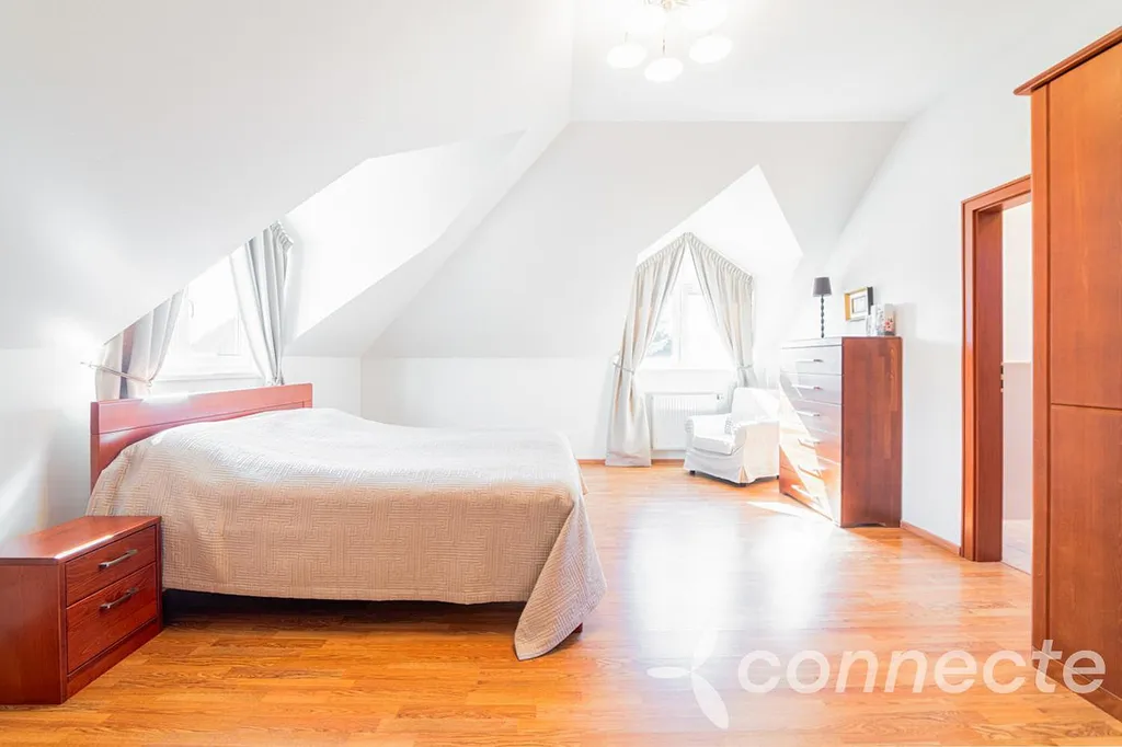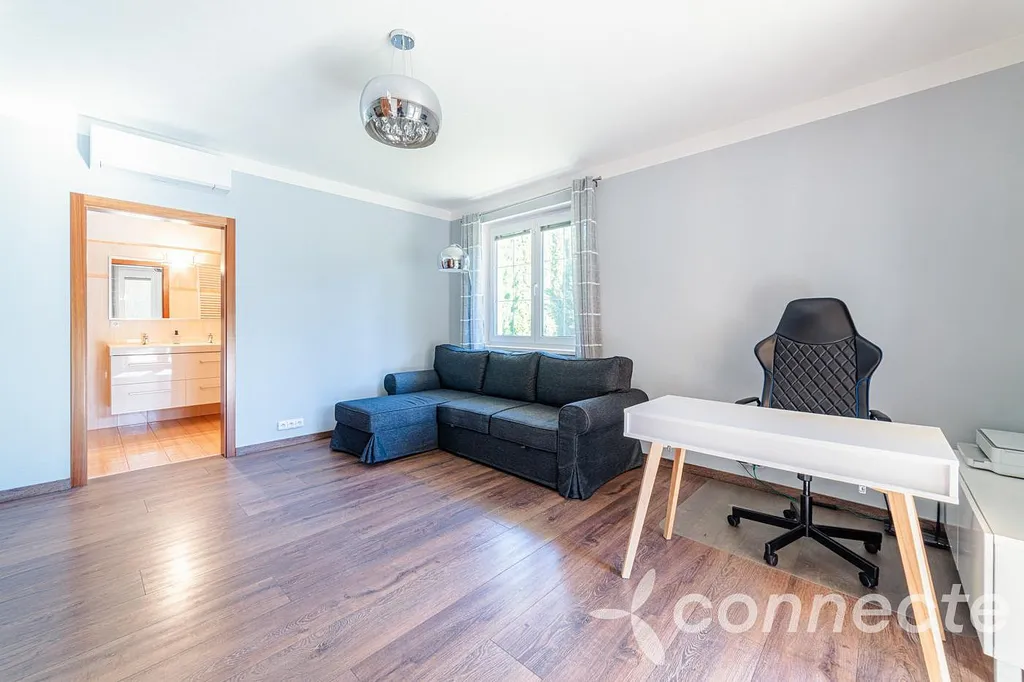 Velkou předností je také promyšlená dispozice. Jedna z ložnic má vlastní koupelnu, další ložnice zase vlastní šatnu, a díky čtyřem koupelnám si každý člen rodiny užije dostatek pohodlí i soukromí. V případě potřeby lze nemovitost velmi dobře využít také pro dvougenerační bydlení.