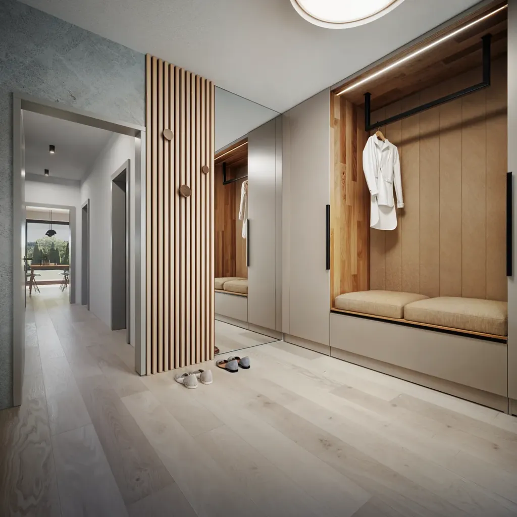 Klienti si mohou vybrat z nabídky dekorů obkladů, dlažby, podlahy a interiérové dveře včetně obložkových zárubní od předem určených dodavatelů stavby.