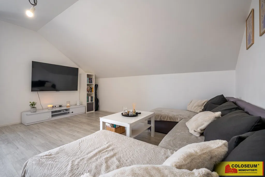 Byt o celkové ploše 107,4 m² se nachází v podkroví nově postaveného bytového domu v lokalitě tvořené převážně novostavbami. K bytu náleží vlastní zahrada o rozloze 194 m², ideální pro relaxaci, rodinné aktivity či letní posezení, a také dva parkovací místa přímo na pozemku. Součástí je i retenční nádrž na zalévání zahrady.
