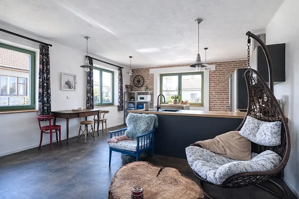 Velkou přidanou hodnotou je, že část stylového vybavení zůstává součástí prodeje – některé kusy prošly renovací a podtrhují jedinečný charakter interiéru.
