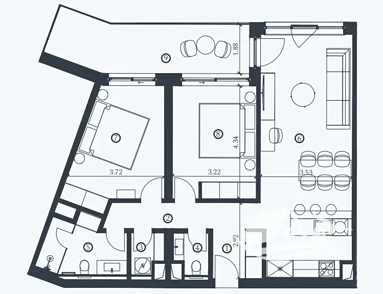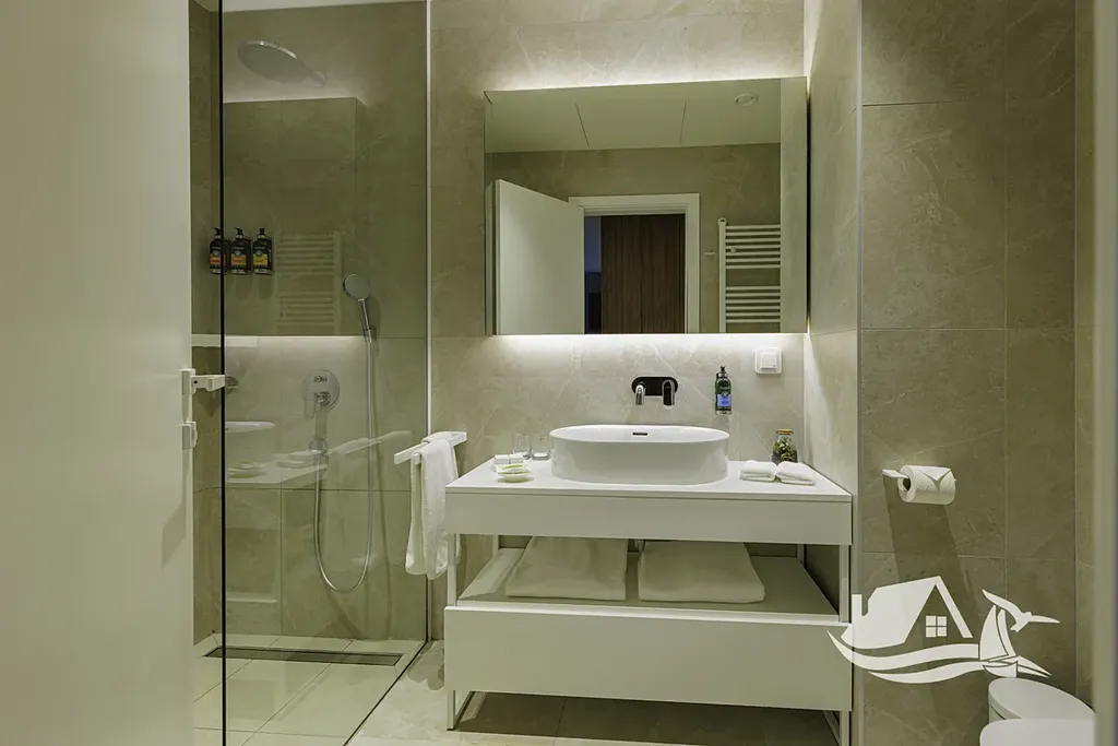 Celková plocha jednotky činí 91,80m², k níž náleží prostorná terasa o velikosti 11,20 m² s úchvatným výhledem na Jaderské moře. Interiér je zařízen moderním a vkusným nábytkem, který podtrhuje kvalitu a styl celého prostoru.