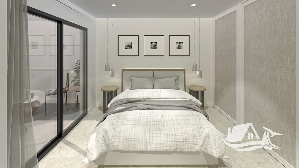 Interiér je navržen s důrazem na jednoduchost, funkčnost a moderní styl. Porcelánové podlahy zajišťují elegantní vzhled i snadnou údržbu, plně vybavená kuchyně se spotřebiči umožňuje okamžité užívání a vestavěné skříně poskytují dostatek úložného prostoru. Komfort doplňují elektrické rolety, videotelefon, předinstalace klimatizace a kvalitní okna s tepelnou izolací.
