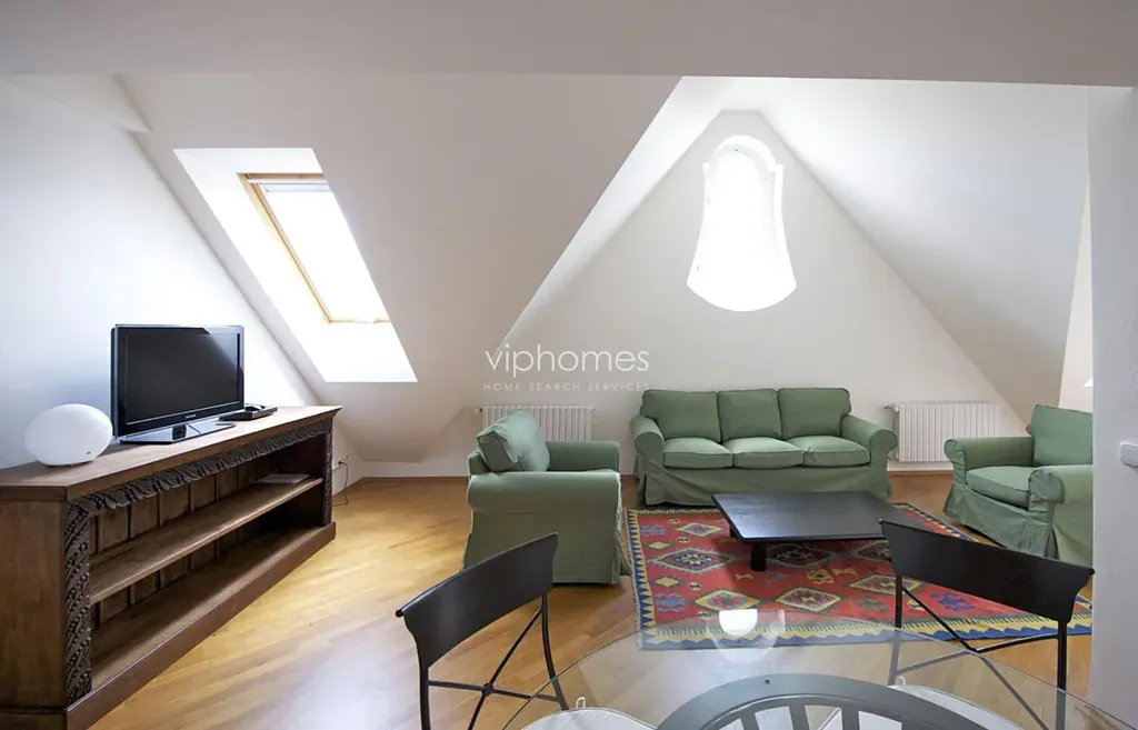 V úrovni vstupu byt disponuje útulným obývacím pokojem s jídelním koutem, vybavenou moderní kuchyní, koupelnou a ložnici se šatnou. Horní patro se sestává ze druhé ložnice se šatnou a koupelny. Vybavení bytu :podlahy dřevo-masiv, vestavěné skříně, pračka se sušičkou, myčka nádobí, telefonní linka, internetové a satelitní TV připojení, domácí videotelefon. V přilehlých ulicích je zavedený pražský systém parkovacích zón a rezidenti mají nárok na parkovací karty. Možnost parkování v nedalekých garážích poblíž, cca 300 m / modrá zóna.