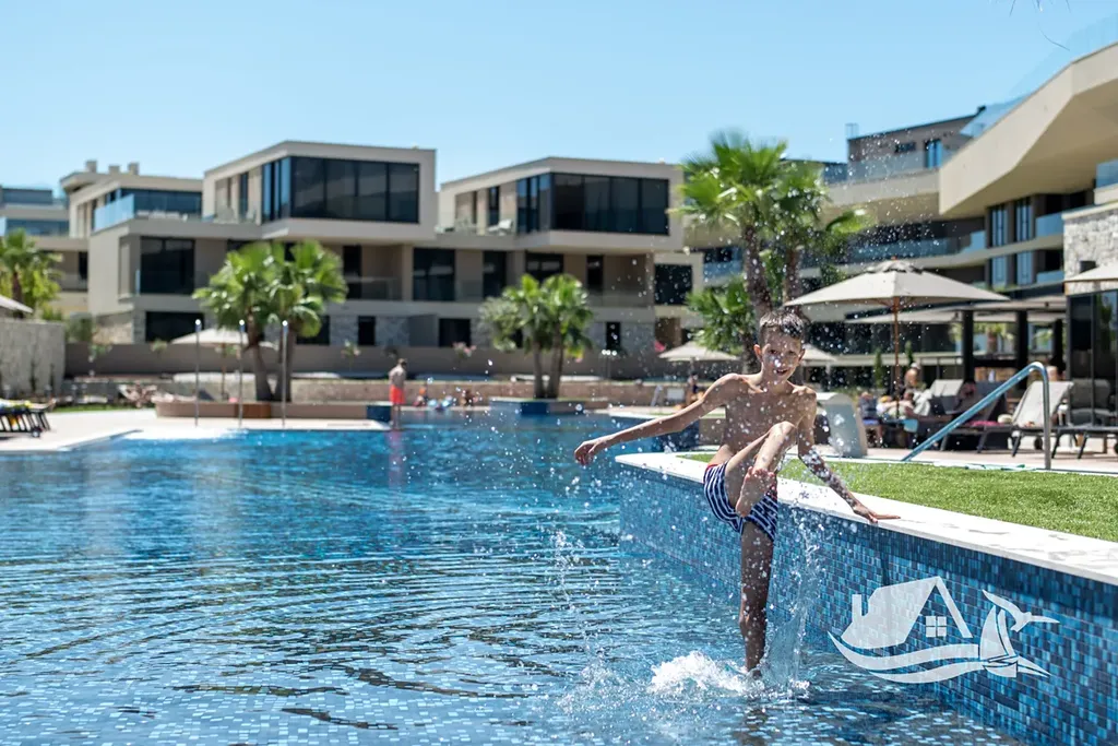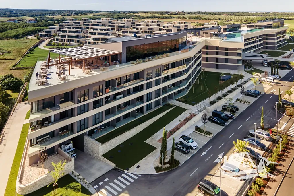 Resort nabízí wellness centrum, infinity bazény, střešní restauraci s výhledem, sportoviště a profesionální správu nemovitostí.