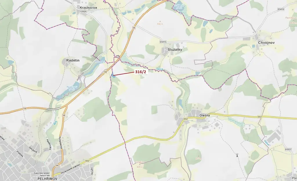 Trvalý travní porost o výměře 3211 m2, parcelní číslo 316/2, podíl 1/1, katastrální území Olešná u Pelhřimova, obec Olešná, obec s rozšířenou působností Pelhřimov, okres Pelhřimov, Kraj Vysočina.