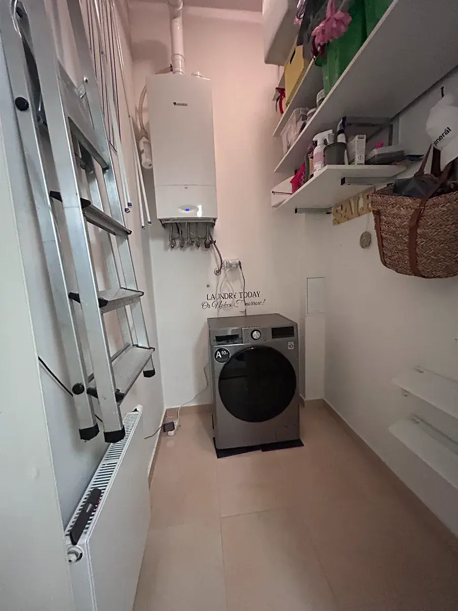 • Komora o výměře 2,7 m², kde se nachází plynový kotel a pračka.
