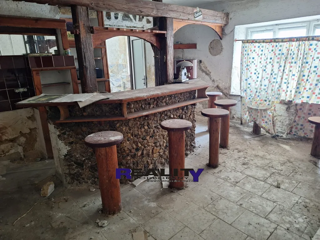 Dispozice domu: přízemí vstupní chodba, dvě místnosti, koupelna s vanou, toaleta. Dříve malá hospůdka s barem - je nutná rekonstrukce ! Horní patro nabízí již zrekonstruovanou bytovou jednotku o velikosti 3+KK + terasa do zahrady + po celé délce domu jsou k využití volné půdní prostory. Vytápění zajišťuje kotel na tuhá paliva, ohřev vody kombinovaný bojler.
