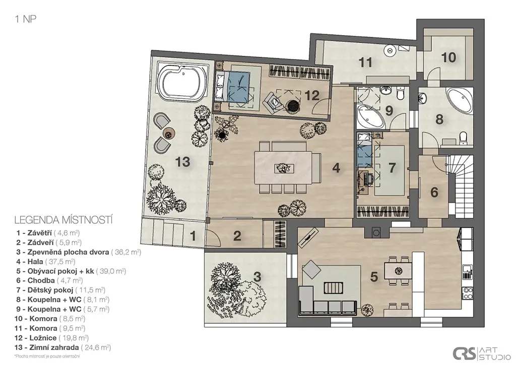 • podlahovou plochu 216 m², užitnou 236 m²