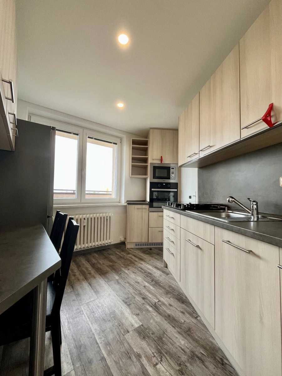 Nabízíme k dlouhodobému podnájmu velmi pěkný a moderně zrekonstruovaný byt o dispozici 2+1 a výměře 43 m², který se nachází v 6. patře panelového domu s výtahem. K bytu náleží prostorný balkon přes celou délku bytu a také praktický kumbál/špajz s pračkou a sušičkou.