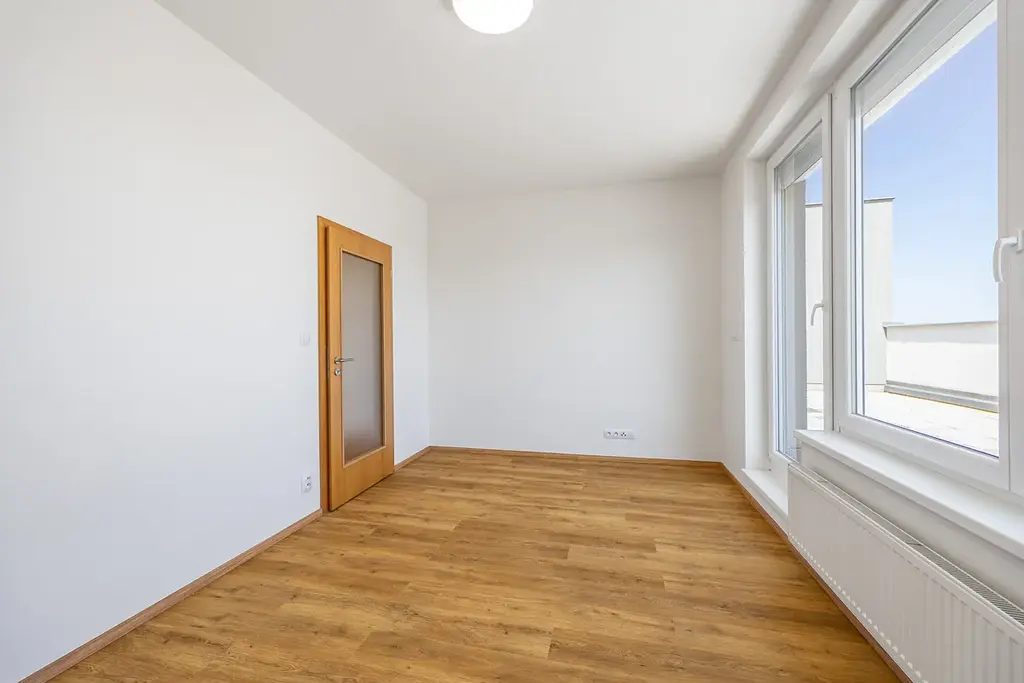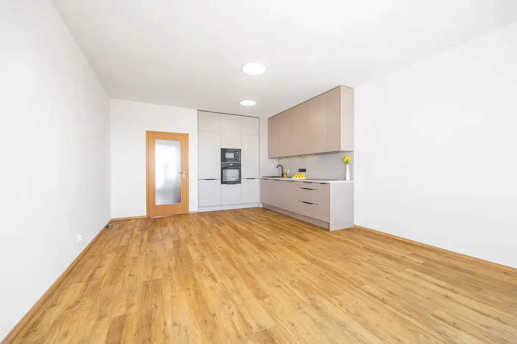 Byt vypadá přesně jak vidíte na fotografiích, nejedná se o vizualizaci. Kuchyně je vyrobena na míru a kompletně vybavená spotřebiči (elektrická trouba, mikrovlnná trouba, indukční deska, myčka). Kuchyně je velkorysá s důrazem na dostatek úložných prostor a pohodlí při každodenním využívání. Společně ve velkém obývacím pokoji s přístupem na balkon tvoří tak příjemný a rozsáhlý prostor pro rodinu - téměř 30 m2. Koupelna je s vanou, sprchovým koutem, topným žebříkem a designovým umyvadlem na praktické skříňce se dvěma zásuvkami. Samostatná toaleta má vlastní umyvadlo s bidetovou sprchou. V chodbě je komora a byt má dostatek místa na vestavěné skříně.