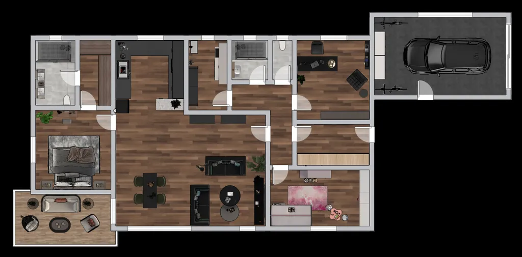 Dům je navržen s důrazem na komfortní rodinné bydlení, dostatek prostoru a soukromí. Celková užitná plocha činí 186 m², součástí je garáž a terasa, to vše na vlastním pozemku o výměře 803 m².
