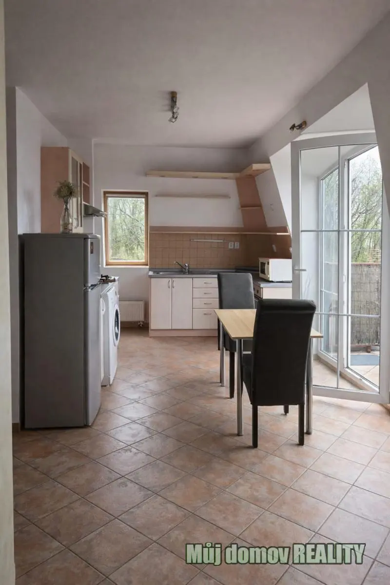 Byt nabízí prakticky řešený otevřený prostor s dostatkem světla, který zajišťuje pohodlné bydlení pro jednotlivce i pár. Díky podkrovnímu charakteru působí velmi příjemně a útulně.