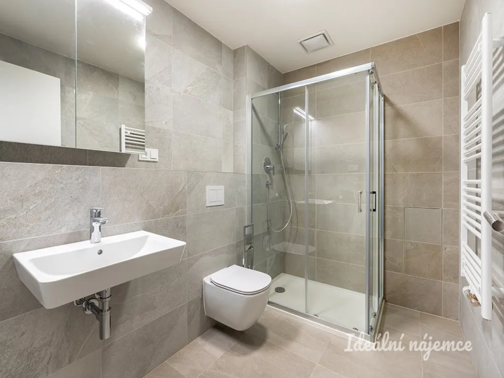 Byt velikosti 62 m² + 12 m² balkon se nachází ve 3. podlaží novostavby. Součástí pronájmu je i garážové parkovací stání a sklep. Byt je 1 rok starý.