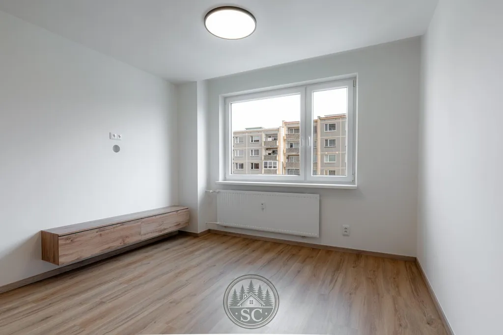 V bytě byly provedeny nové rozvody elektřiny i vody, proběhla kompletní nivelace podlah a následná pokládka vinylu se zvýšenou mechanickou odolností. Součástí je také jídelní stůl z masivu, designové osvětlení v podobě zavěšených kouřových svítidel a televizní stěna.