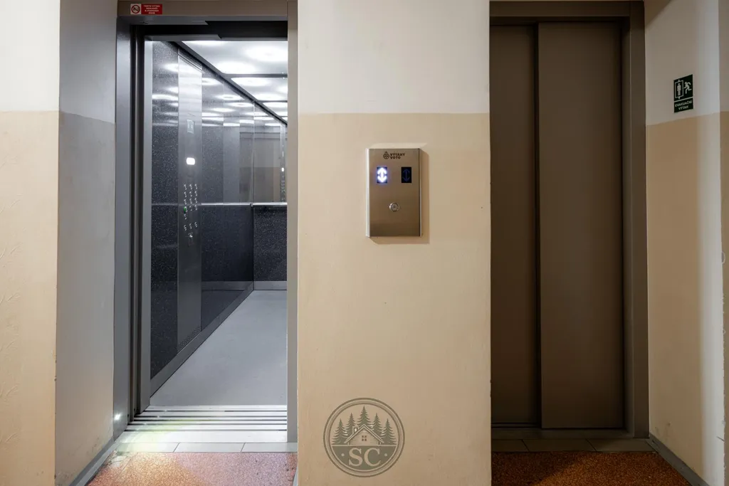 V bytě jsou snížené sádrokartonové stropy a kvalitní interiérové dveře s obložkovými zárubněmi.