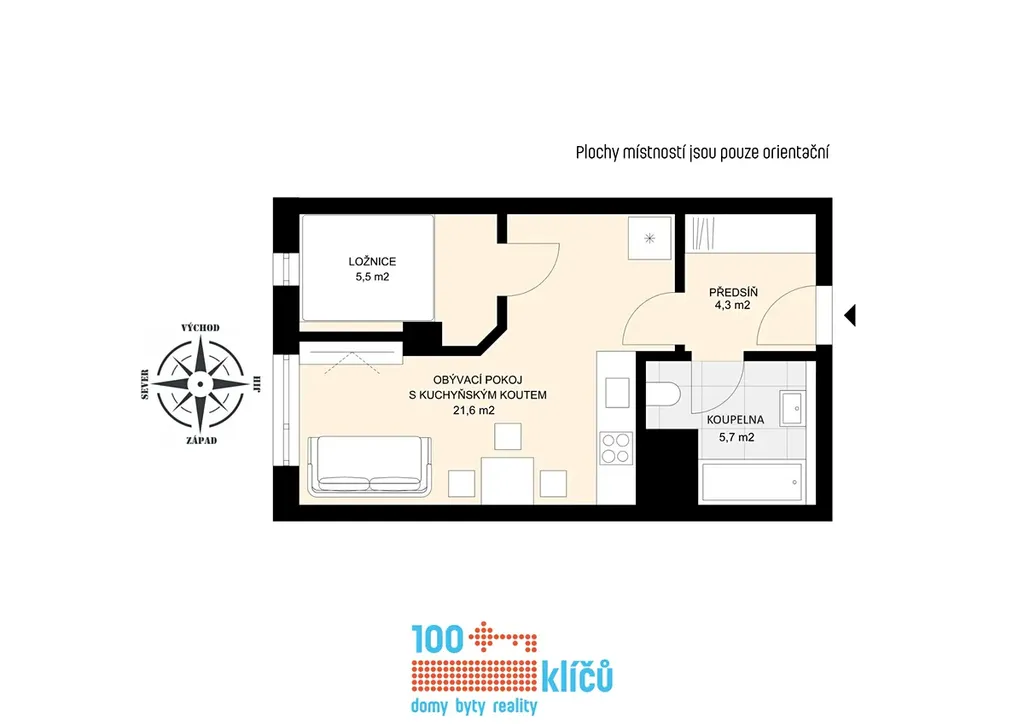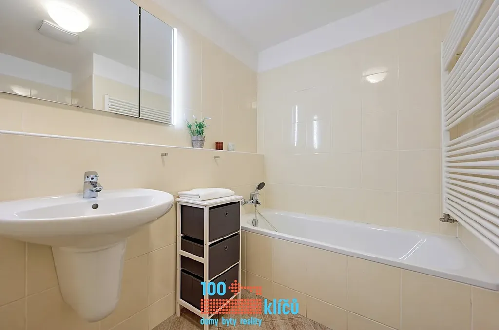 Realitní kancelář 100klíčů vám nabízí pohodový byt o dispozici 1+1 v osobním vlastnictví v moderní budově z roku 2008 v Praze - Modřanech.