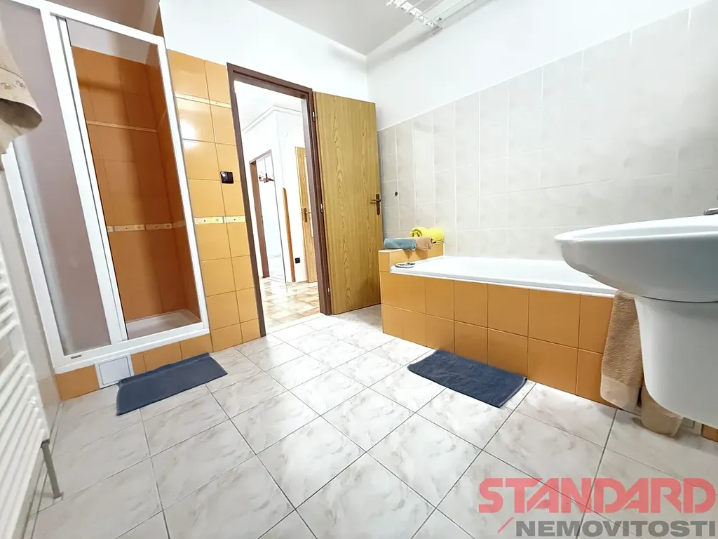 Dispozice: prostorná předsíň, samostatný pokoj cca 25 m², velká koupelna s vanou a sprchovým koutem, samostatné WC, kuchyně, obývací pokoj cca 32 m² a další pokoj cca 21 m². Slunný byt, všechna okna orientována na východ.