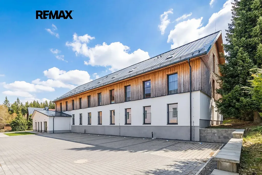 Apartmán o dispozici 1+kk a podlahové ploše 28 m² se nachází ve 3. nadzemním podlaží moderního apartmánového domu (kolaudace 2022), který vznikl citlivou rekonstrukcí bývalého hotelu.