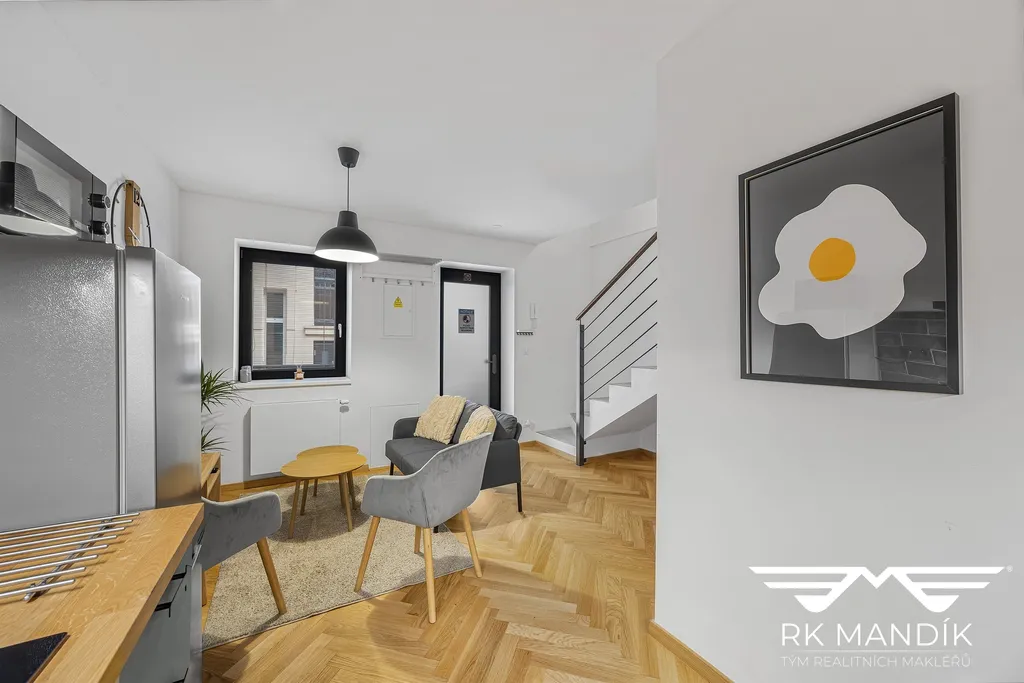 Nabízíme k pronájmu moderní, dvoupodlažní ateliér o dispozici 2+kk s terasou, nacházející se v architektonicky oceňovaném projektu Karleen z roku 2022, v jedné z nejvyhledávanějších částí Prahy – Karlíně.