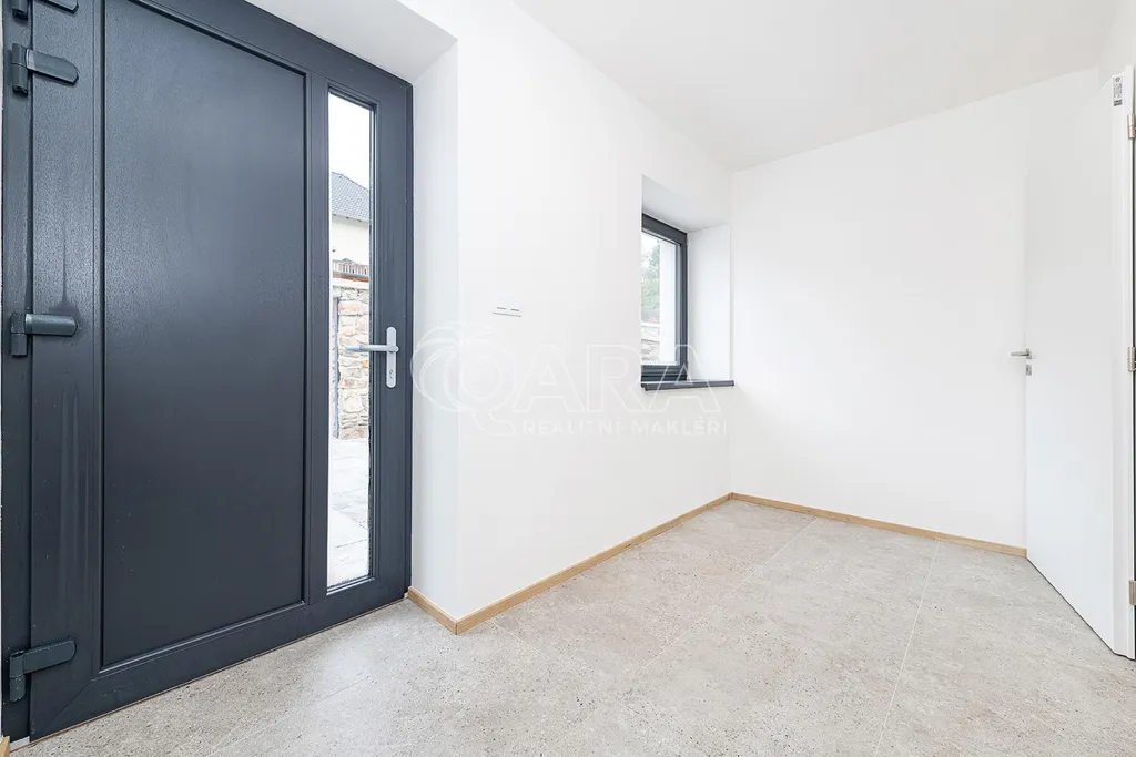i duši. Přízemí domu zdobené přírodním travertinem, dubové schodiště a sedmikomorová okna, která dovnitř propouštějí jen ticho a světlo, to vše tvoří harmonický celek připravený pro vaše nové kapitoly.