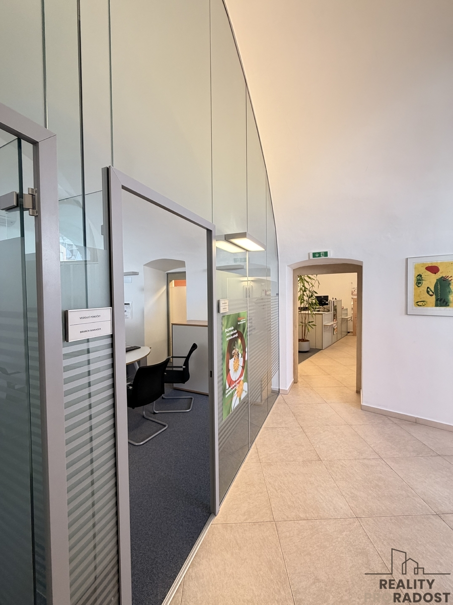 Prostory jsou ideálně uzpůsobeny pro kancelářské využití, případně pro finanční instituce, služby či reprezentativní sídlo firmy.