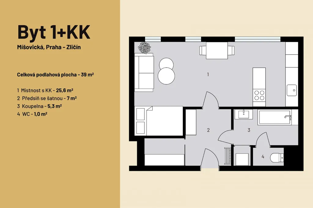 Prodej bytu 1+kk, Praha - Zličín, Míšovická, 39 m2
