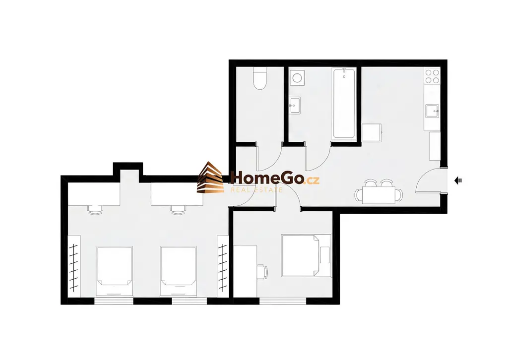 • dvě neprůchozí ložnice z toho jedna mimořádně velká vhodná na spolubydlení dvou osob a jedna menší pro jednoho