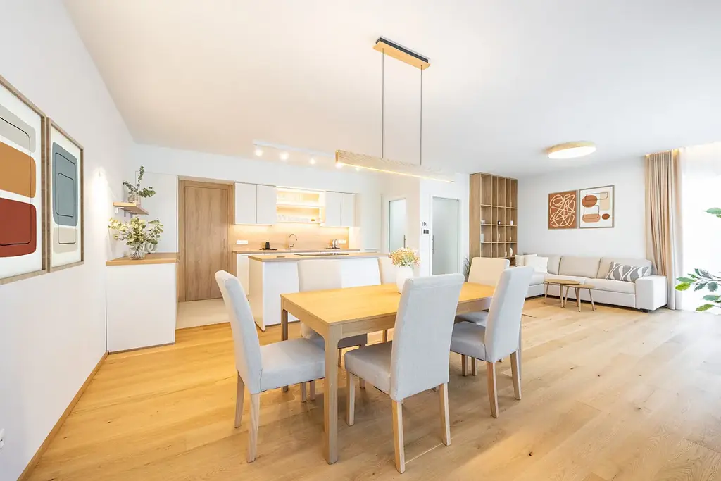– Vytápění pomocí tepelných čerpadel vzduch-voda a systém teplovodního podlahového vytápění.