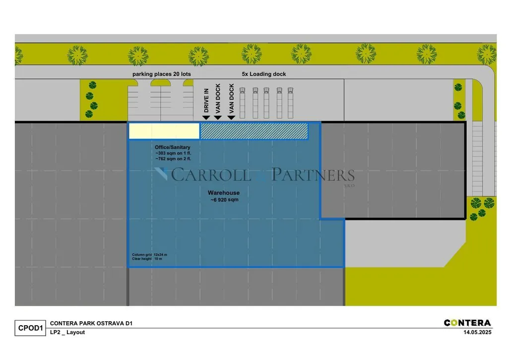 Nabízíme k pronájmu moderní prostory pro skladování a výrobu v nové průmyslové zóně v Ostravě - Hrušov. Nabízené prostory jsou součástí haly LP2 o celkové ploše 41 500 m2. V současné době je v hale volná jednotka o velikosti 12 400 m2. Kancelářské a technické zázemí bude vystavěno pro klienty na míru, (koncept built to suit), dle konkrétních požadavků klienta.