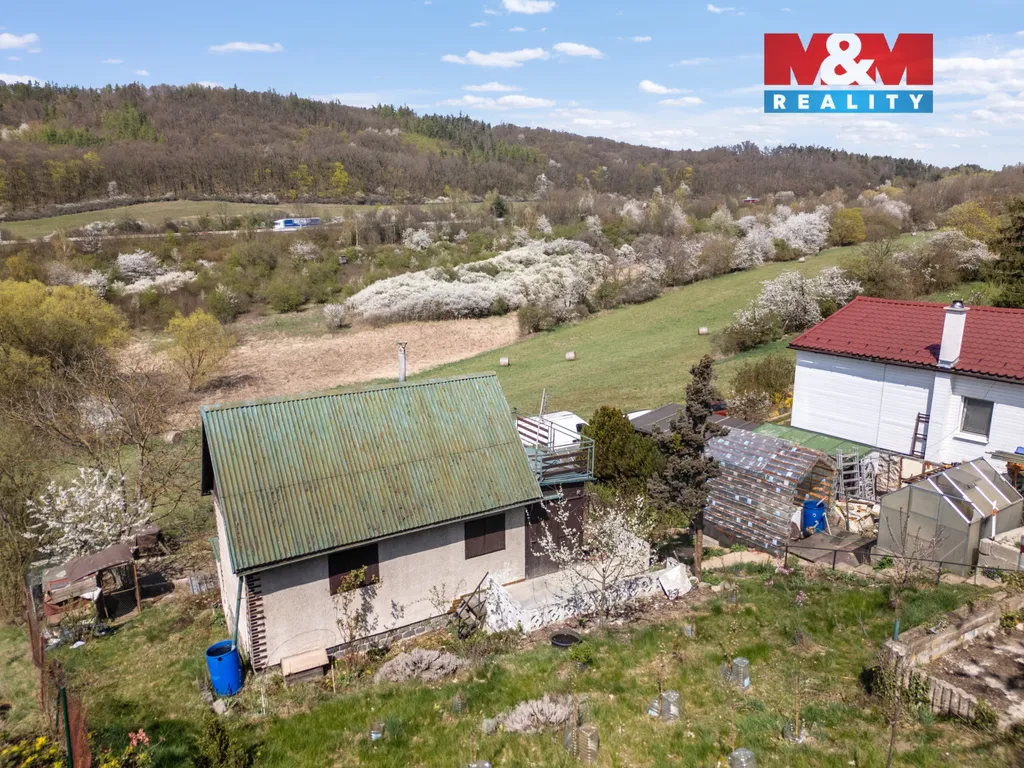 K prodeji montovaná (dřevěná) chata na zděném základu, která je umístěna na vlastním pozemku o celkové výměře 550 m2. Na pozemek je přiveden nový přívod elektřiny (momentálně odpojen elektroměr), užitková voda svedena do podzemní nádrže, vrtaná studna se zásobníky na vodu. V chatě není vybudované sociální zázemí a je spíše určena k demolici montované části a k nové výstavbě většího objektu, případně ke kompletní rekonstrukci. Svažitý, kaskádovitý pozemek. Příjezd autem je možný k horní i spodní části pozemku, na obou stranách je vybudovaná plocha na parkování na vlastním pozemku. Zděné podlaží disponuje technickými místnostmi (19 m2), v přízemí je vstupní chodba (veranda), kuchyně a jeden pokoj (27 m2), v podkroví chodba a jedna místnost (15m2) se vstupem na terasu. Veškerá vybavenost v Loděnici a v Rudné, stejně tak jako nájezd na dálnici D5.
