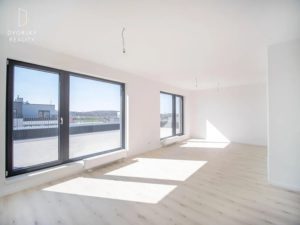 Dominantou bytu je promyšlený obytný prostor s přípravou na kuchyňskou linku a veškeré spotřebiče. Samozřejmostí je kompletní kabelová infrastruktura, datové rozvody v každé obytné místnosti a domácí videotelefon.