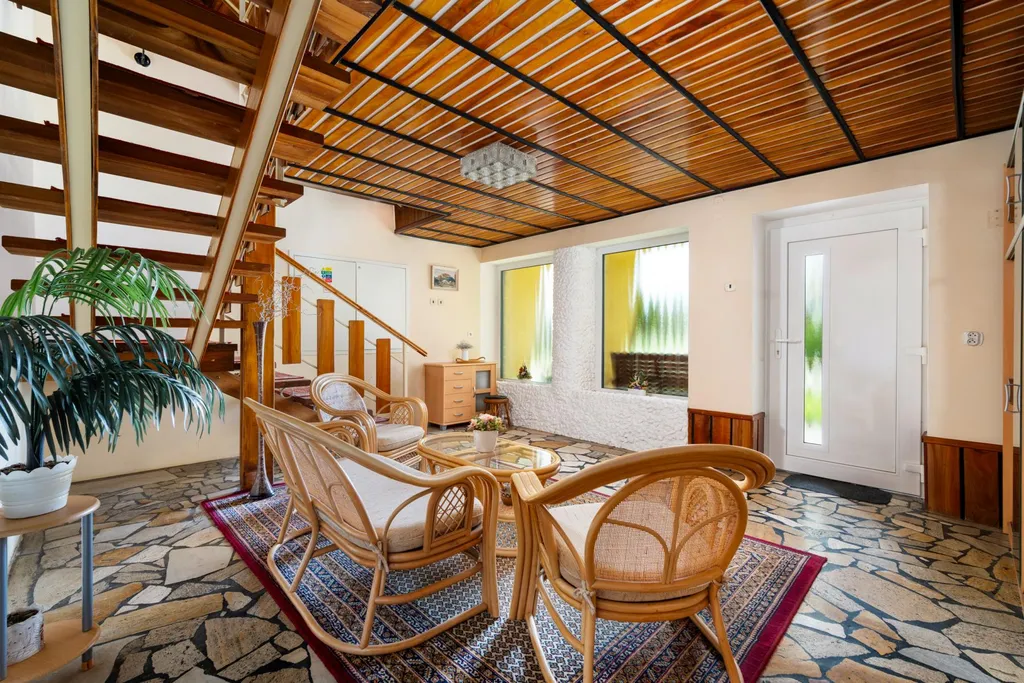 Vila o 3 podlažích nabízí velkorysou užitnou plochu s logickým členěním na reprezentativní, obytnou a technickou zónu. Součástí je i hospodářská budova a dvě garáže.